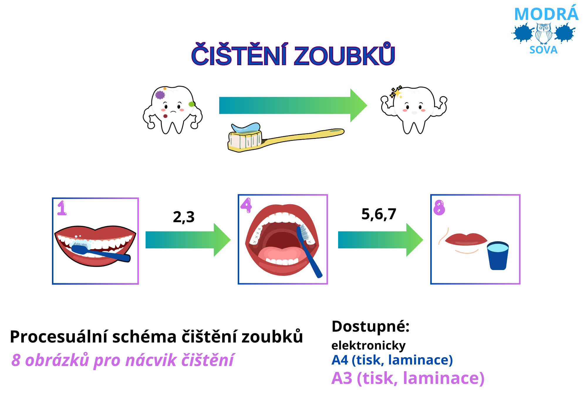 - Procesuální schéma čištění zoubků