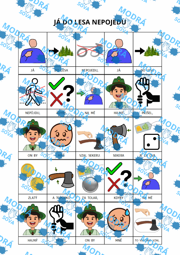 Písnička Já do lesa nepojedu je vhodným výukovým materiálem pro všechny malé zpěváky. Díky hravým piktogramům nenásilně pomáhá rozvíjet porozumění u všech dětí a je vhodná i pro děti s narušenou komunikační schopností (např. pro děti s PAS, vývojovou dysfázií apod.). Produkt je zasílán již barevně v... celý popis