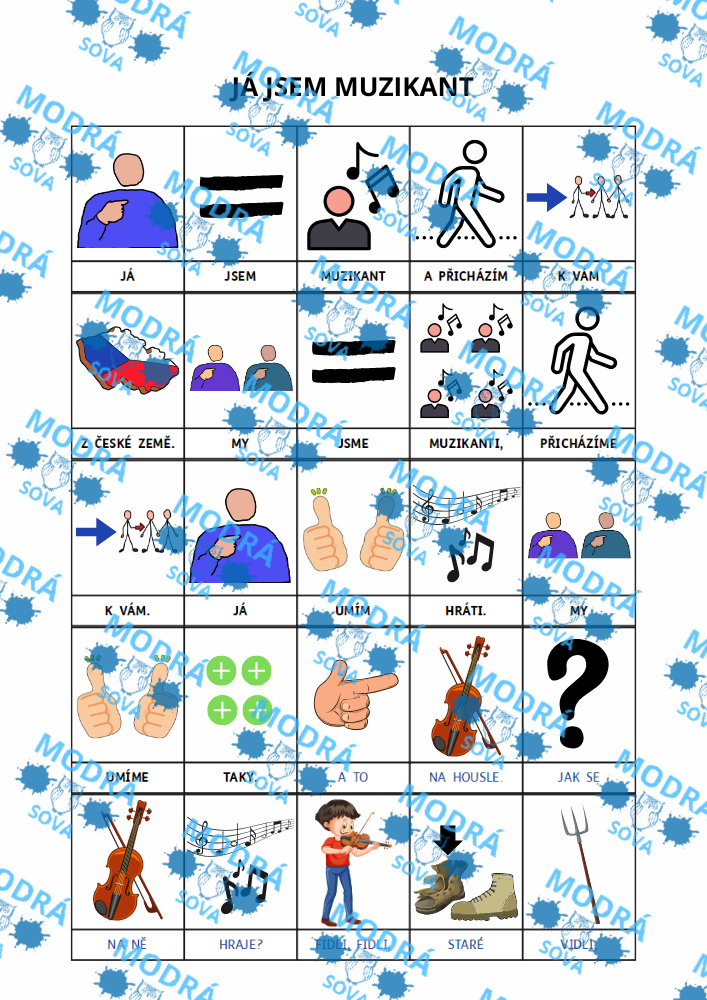 Písnička Já jsem muzikant je vhodným výukovým materiálem pro všechny malé zpěváky. Díky hravým piktogramům nenásilně pomáhá rozvíjet porozumění u všech dětí a je vhodná i pro děti s narušenou komunikační schopností (např. pro děti s PAS, vývojovou dysfázií apod.).