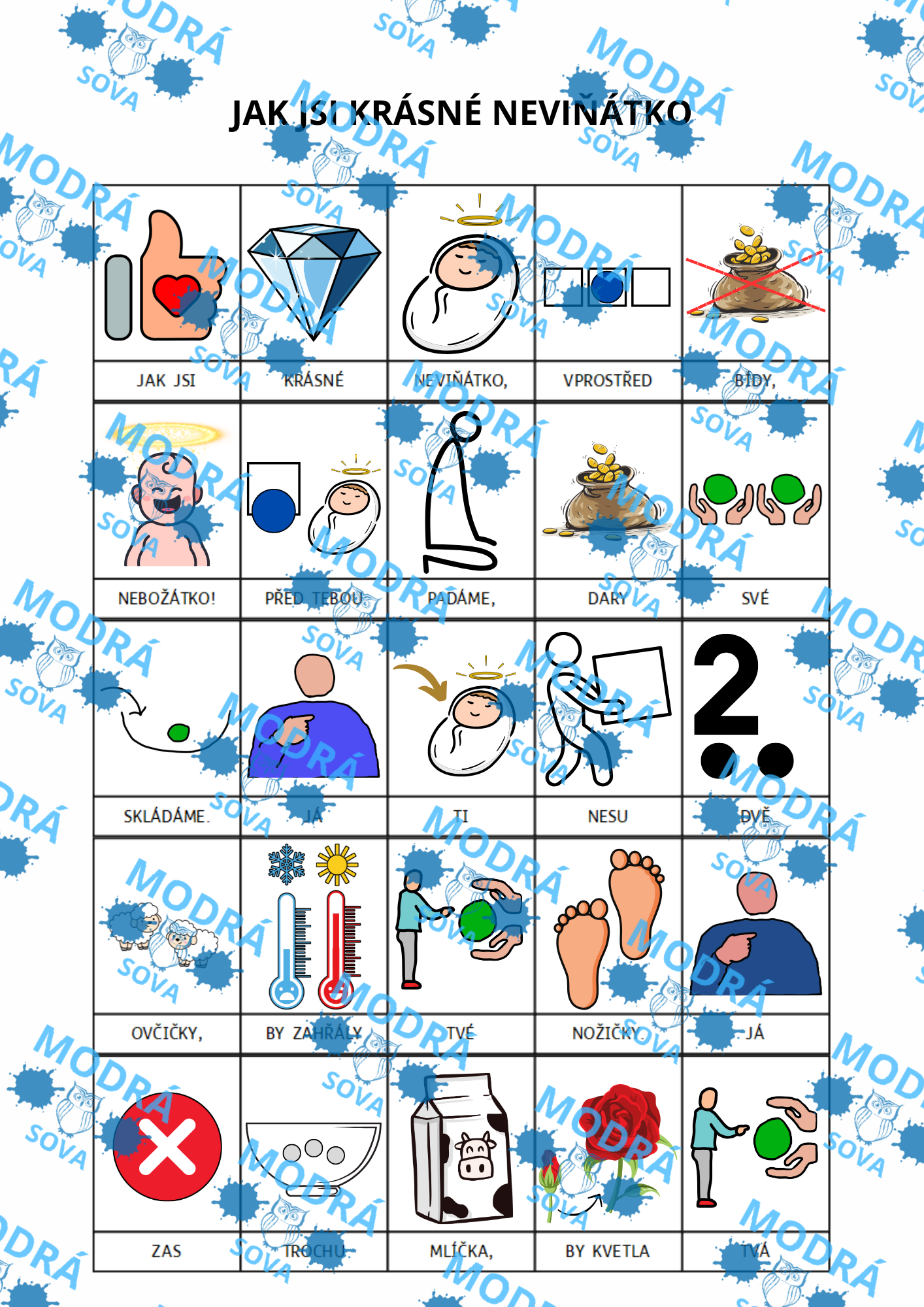 Koleda Jak jsi krásné neviňátko je vhodným výukovým materiálem pro všechny malé zpěváky. Díky hravým piktogramům nenásilně pomáhá rozvíjet porozumění u všech dětí a je vhodná i pro děti s narušenou komunikační schopností (např. pro děti s PAS, vývojovou dysfázií apod.).