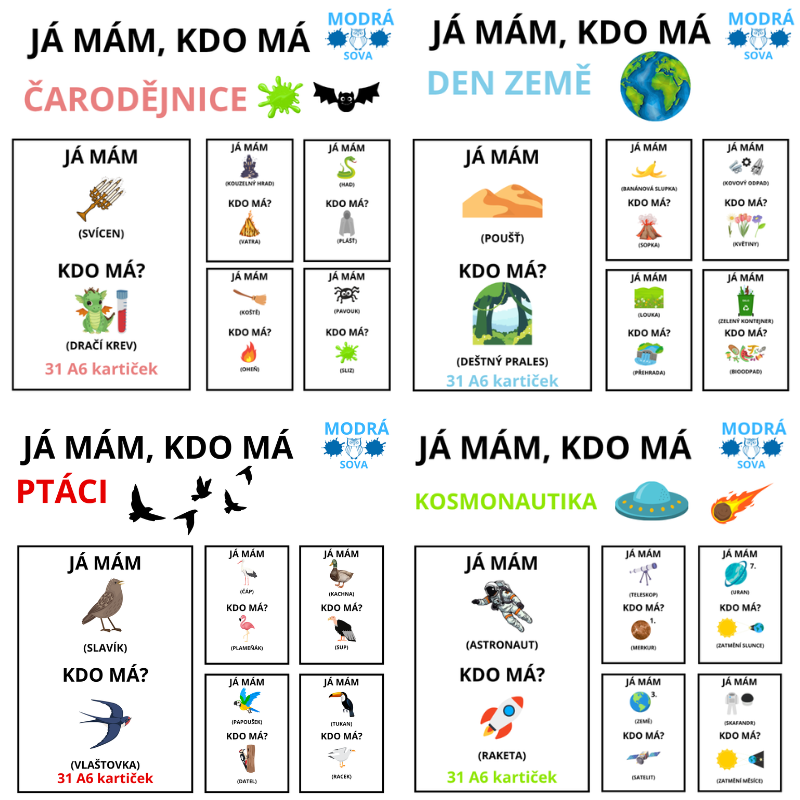 - Já mám, kdo má 2. SADA, DUBNOVÁ TÉMATA (ptáci, čarodějnice, den Země, kosmonautika)