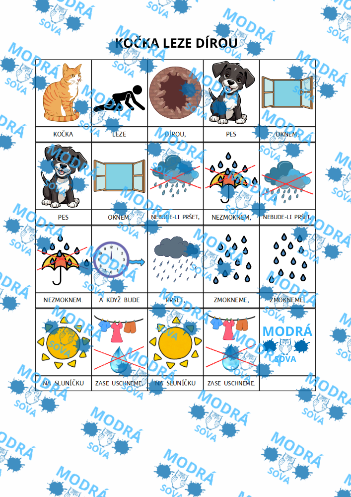 Písnička Kočka leze dírou je vhodným výukovým materiálem pro všechny malé zpěváky. Díky hravým piktogramům nenásilně pomáhá rozvíjet porozumění u všech dětí a je vhodná i pro děti s narušenou komunikační schopností (např. pro děti s PAS, vývojovou dysfázií apod.).