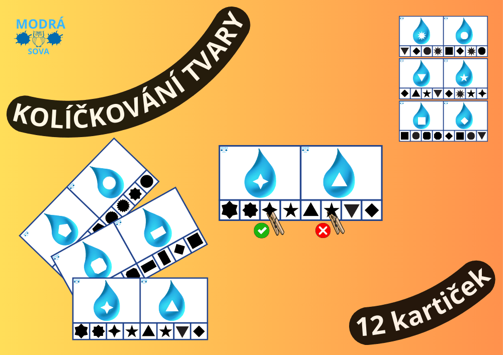 Dítě si prohlédne tvar v kapičce a kolíčkem označí správnou odpověď.
