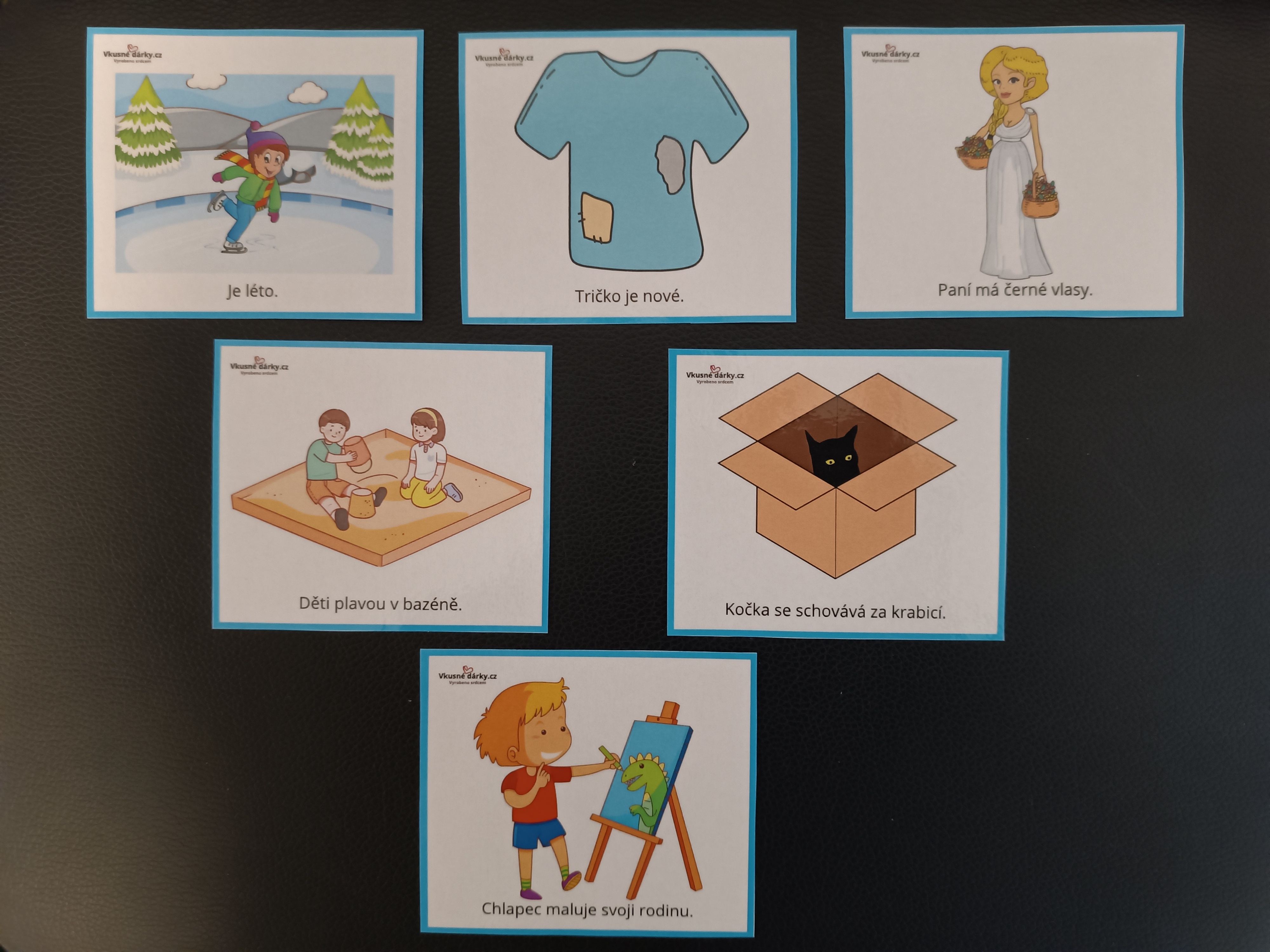 TIP: Je pro Vaše dítě tato aktivita příliš náročná? Každé dítě je jiné a nelze připravit aktivity, které by vyhovovaly všem dětem stejně. Můžete zkusit jednodušší hru Poslouchej, pozoruj a kolíčkuj!, případně si tvrzení v popiscích obrázků zjednodušit. Přejeme pěknou zábavu!