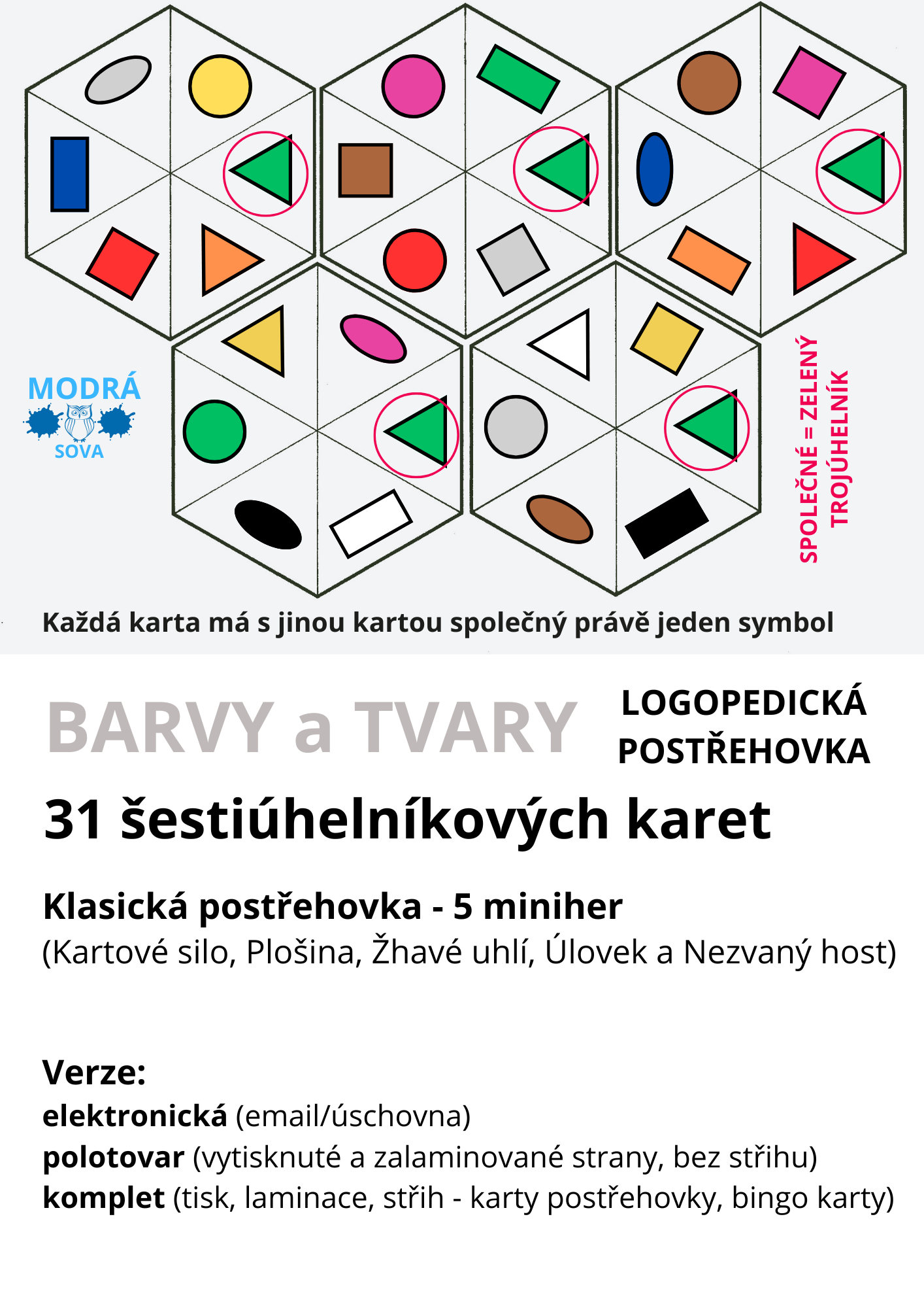 7 stran A4 s kartami postřehovky - u elektronické a verze tisk a laminace A4; u verze komplet již nastříhané kartičky