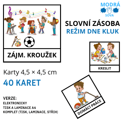 - komplet verze – zalaminované a nastříhané kartičky s přiloženým háčkovým suchým zipem.