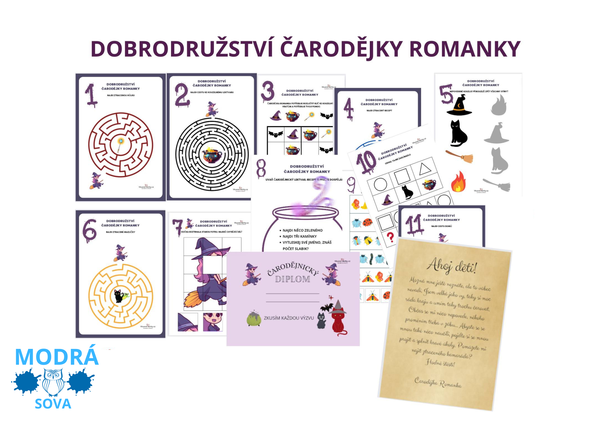 - Plotovka - Dobrodružství čarodějky Romanky (11 stran aktivit, diplom, dopis)