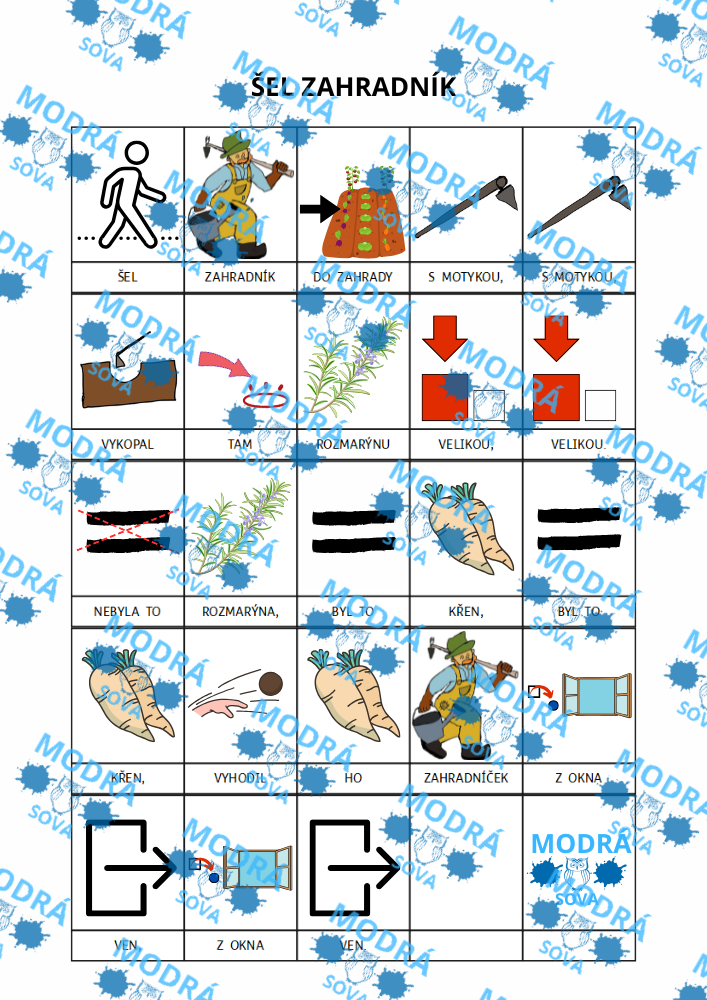 Písnička Šel zahradník je vhodným výukovým materiálem pro všechny malé zpěváky. Díky hravým piktogramům nenásilně pomáhá rozvíjet porozumění u všech dětí a je vhodná i pro děti s narušenou komunikační schopností (např. pro děti s PAS, vývojovou dysfázií apod.). Produkt je zasílán již barevně vytiskn... celý popis