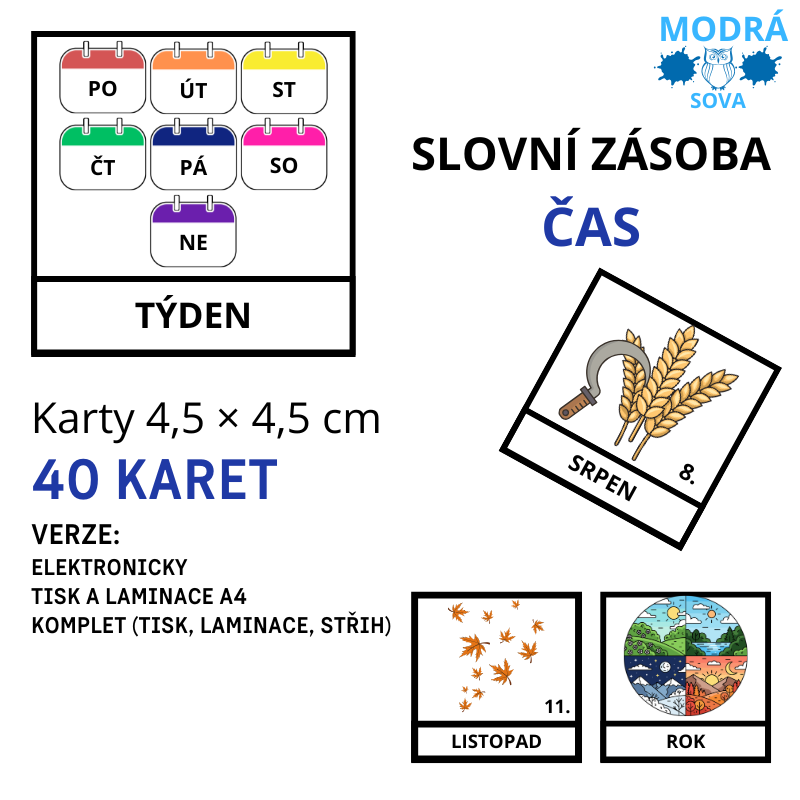 - Základní slovní zásoba ČAS (40 kartiček), kartičky 4,5 x 4,5 cm