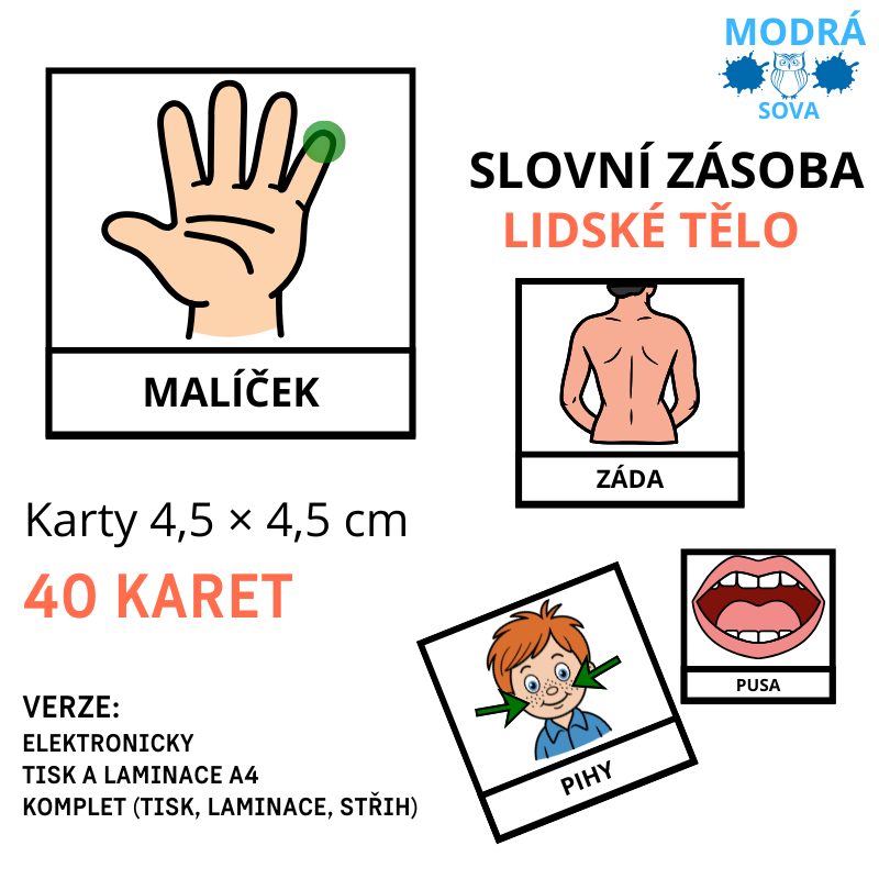 - Základní slovní zásoba LIDSKÉ TĚLO (40 kartiček), kartičky 4,5 x 4,5 cm