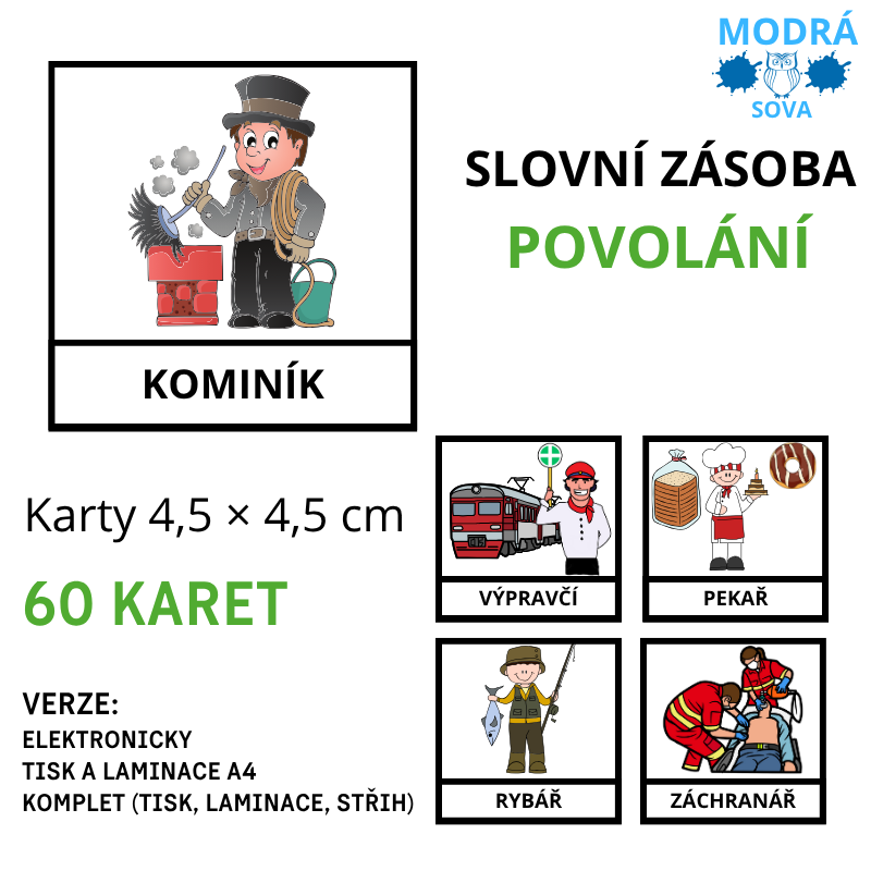 - Základní slovní zásoba POVOLÁNÍ (60 kartiček), kartičky 4,5 x 4,5 cm