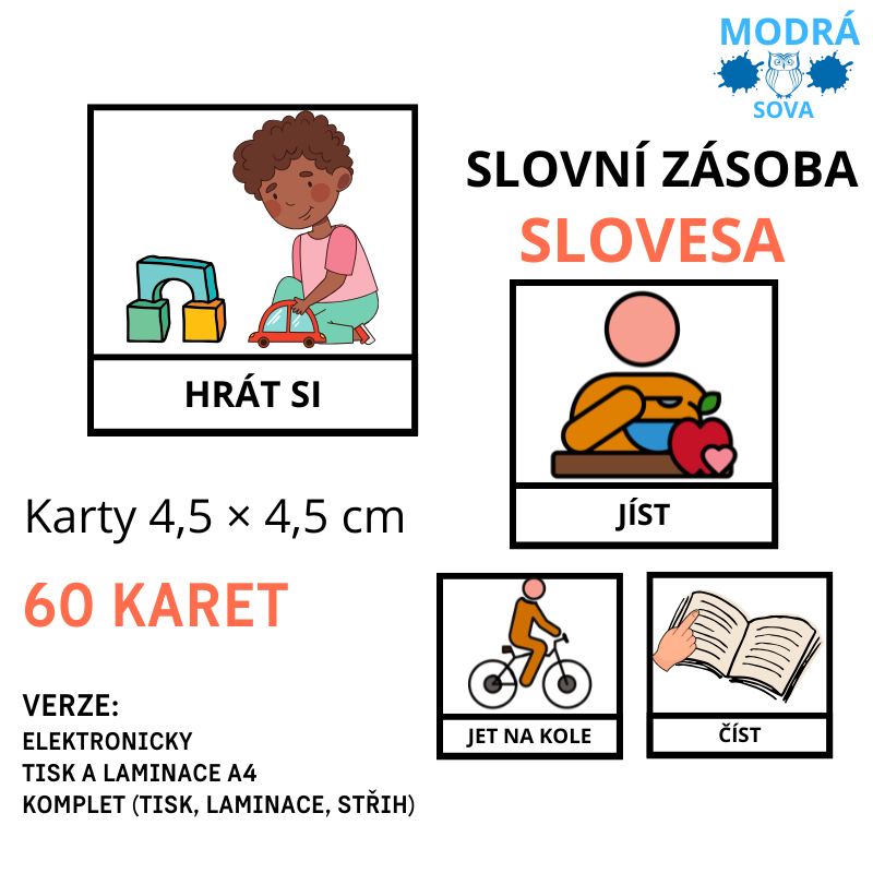 - Základní slovní zásoba SLOVESA (60 kartiček), kartičky 4,5 x 4,5 cm