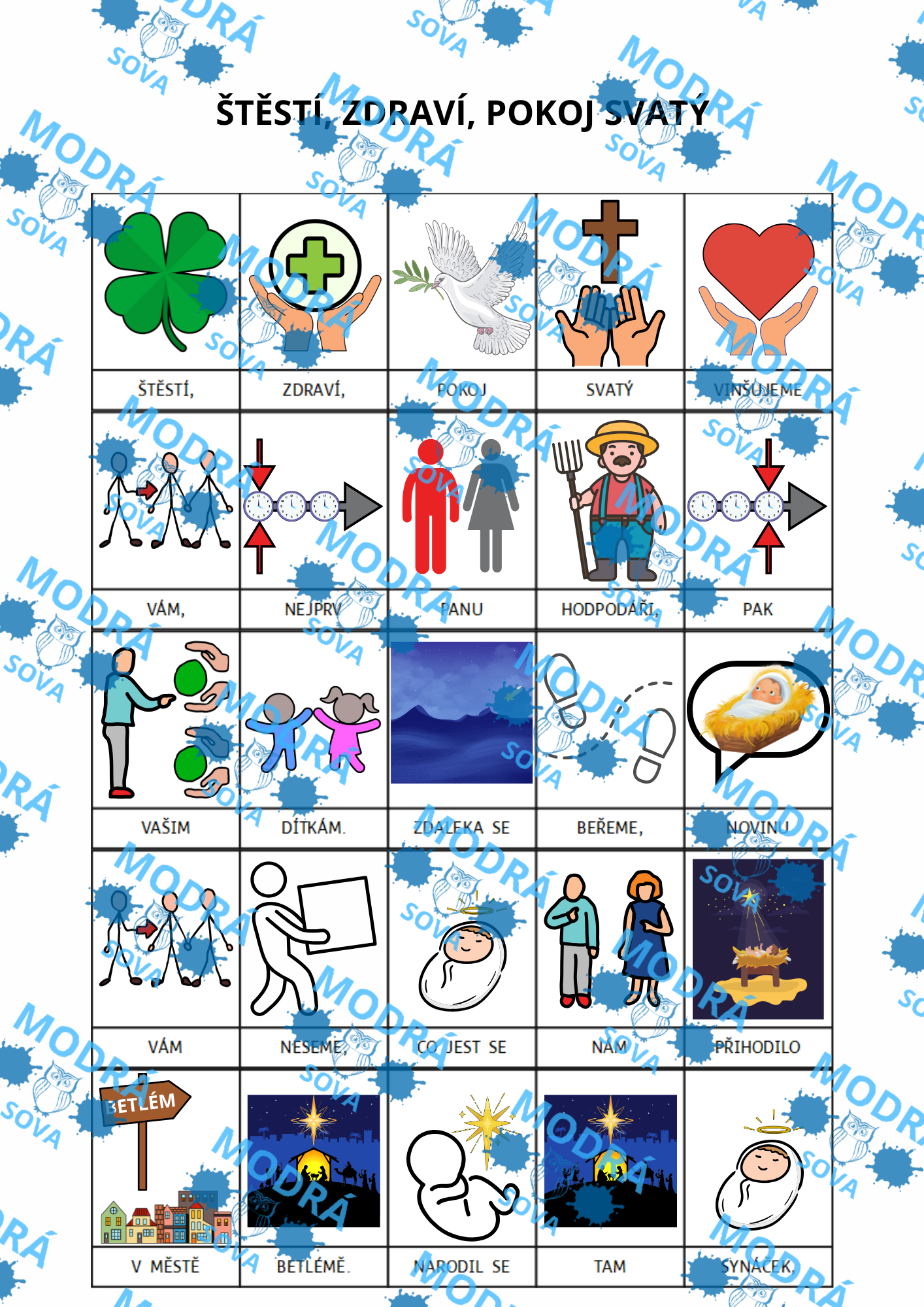 Koleda Štěstí, zdraví, pokoj svatý je vhodným výukovým materiálem pro všechny malé zpěváky. Díky hravým piktogramům nenásilně pomáhá rozvíjet porozumění u všech dětí a je vhodná i pro děti s narušenou komunikační schopností (např. pro děti s PAS, vývojovou dysfázií apod.).