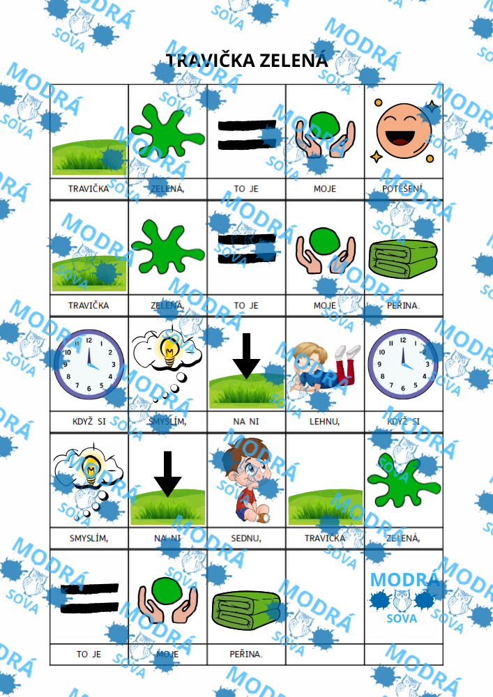 Písnička Travička zelená je vhodným výukovým materiálem pro všechny malé zpěváky. Díky hravým piktogramům nenásilně pomáhá rozvíjet porozumění u všech dětí a je vhodná i pro děti s narušenou komunikační schopností (např. pro děti s PAS, vývojovou dysfázií apod.).