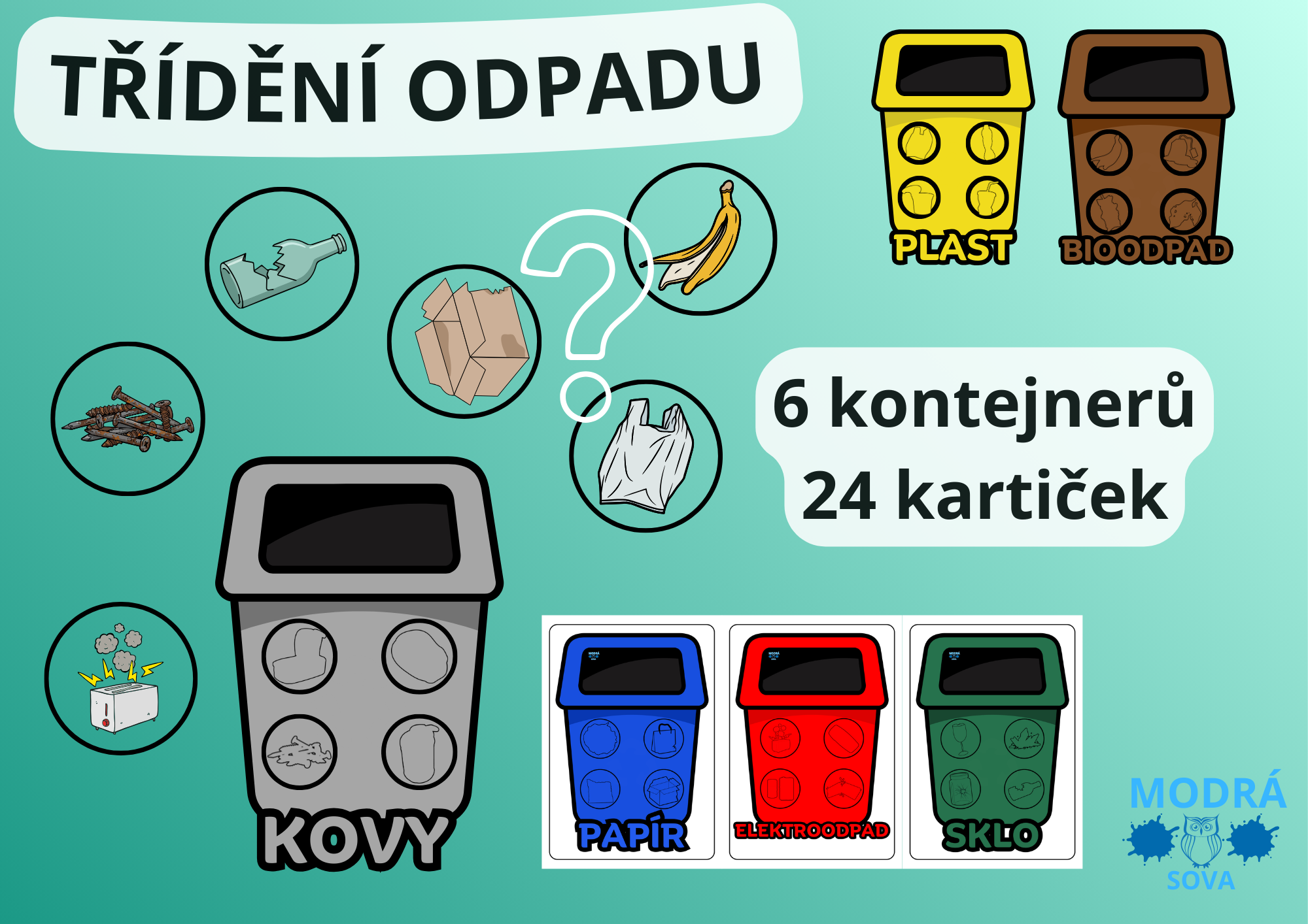 - Třídění odpadu (6 kontejnerů, 24 kartiček)