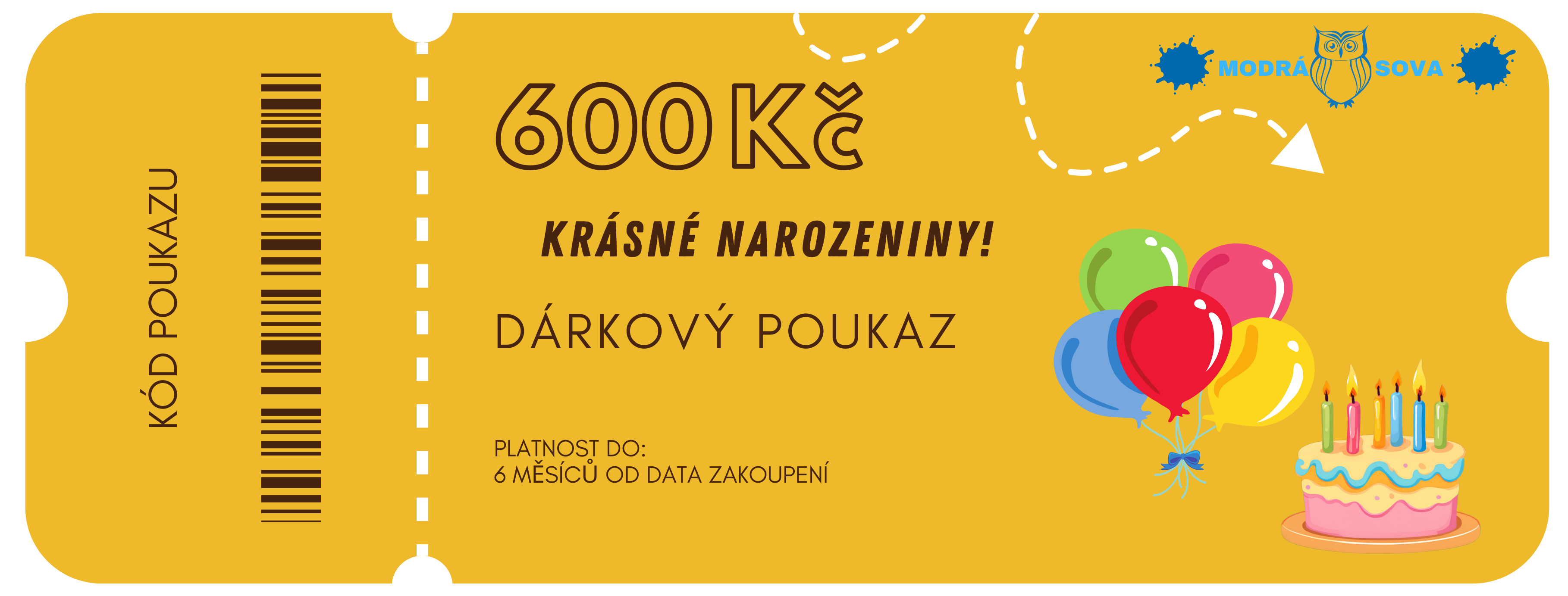 Dárkový poukaz v hodnotě 600 Kč s narozeninovým motivem.